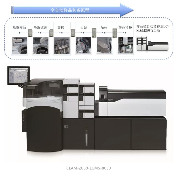 為使治療藥物監測更加安全、準確和自動化,島津全自動前處理系統CLAM-2030(Clinical Laboratory Automated sample preparation Module)僅需簡單放置采血管及樣品管,其他前處理步驟及質譜分析都交給CLAM-2030完成,真正做到全自動化,零人工前處理操作,排除人工操作誤差,數據準確度更高,穩定性更好。