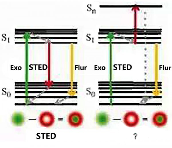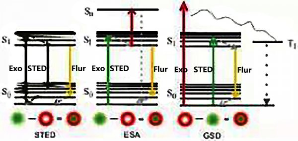 STED能級(jí)圖(左)和另一種超分辨的能級(jí)實(shí)現(xiàn)模式
