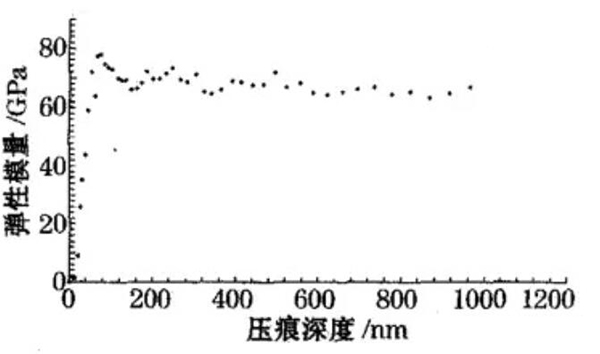 下圖是最大壓痕深度1μm時單晶鋁彈性模量與壓痕深度的關系。此外,納米硬度儀還可以輸出接觸剛、實時載荷等隨壓頭位移的變化曲線,試驗者可以從中獲得豐富的信息。
