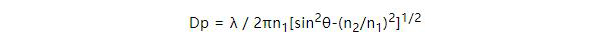 當衰減反射波的振幅衰減到原來振幅的1/e時的距離稱之為穿透深度(Dp)。穿透波的深度由入射波的波長λ、晶體的折射率n1、樣品的折射率n2和光在晶體中的入射角θ決定。Dp的計算如公式: