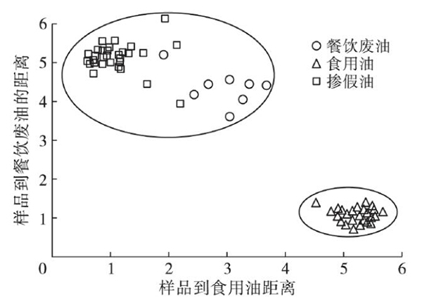 為了建立基于衰減全反射傅里葉變換紅外光譜(ATR-FTIR)的餐飲廢油摻假檢測方法,以常見食用油和餐飲廢油為原料,收集8個餐飲廢油和25個食用油樣品,制備30個摻假油樣品,共63個油樣進行紅外光譜掃描。隨機取48個油樣作為校正集樣品,15個油樣作為驗證集樣品,建立餐飲廢油定性分析模型,并對定性模型進行驗證;從30個摻假油樣品中,隨機取20個油樣作為校正集樣品,10個油樣作為驗證集樣品,建立餐飲廢油定量分析模型,并對定量模型進行驗證。